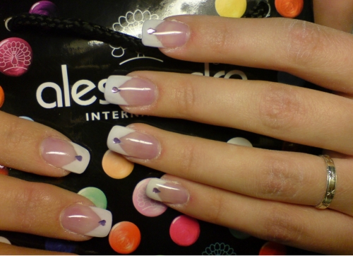 spezielle Lackiertechniken mit weißem Nagellack, wobei nur die Spitzen der Fingernägel mit weißem French-Gel versehen werden.